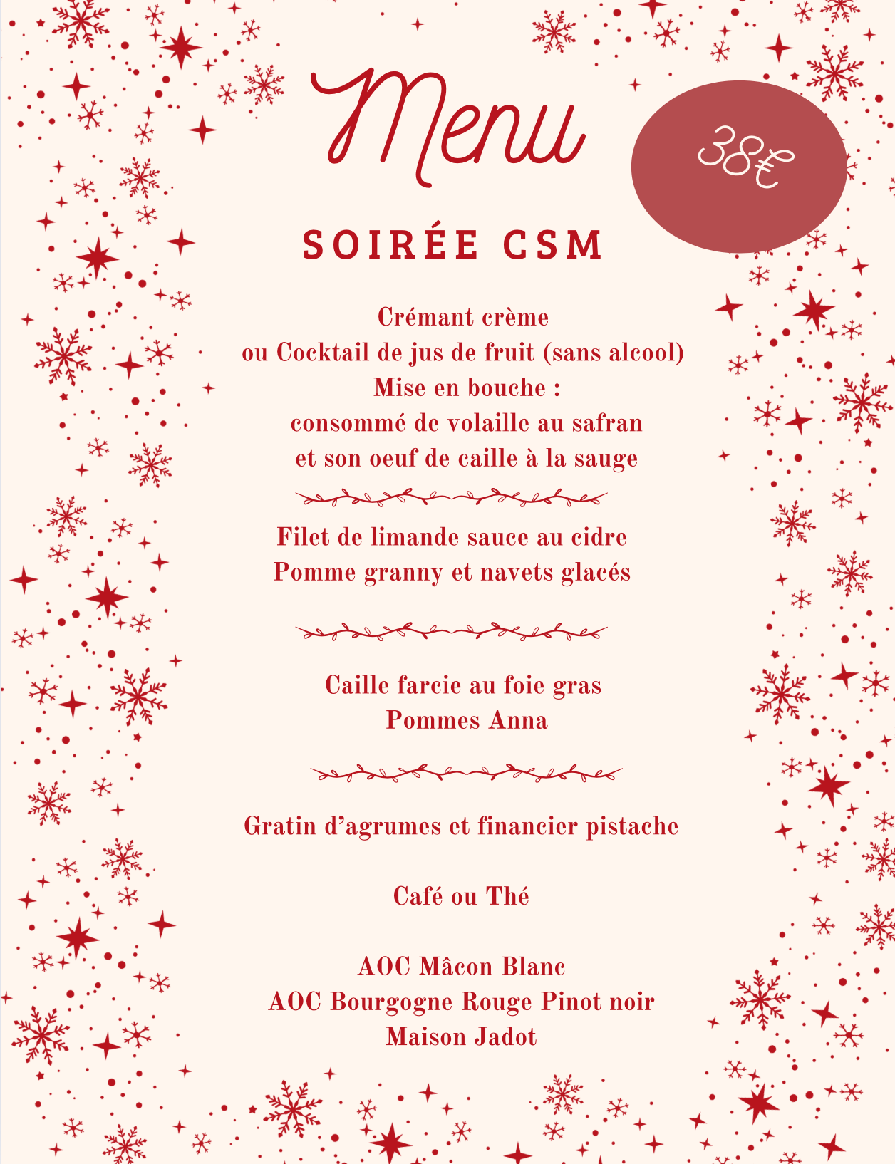 Cette soirée gastronomique est ouverte à tous les adhérents du CSM.